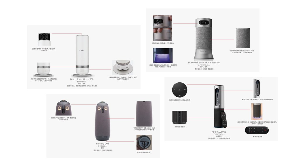 调研的初期主要是做针对更具参考性产品进行研究,如智能监控摄像头、会议设备等。了解产品主要功能、使用逻辑、布局等等。