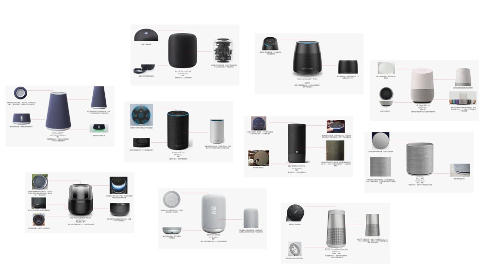 接着是发散性的研究,对一些类似的、主流的产品进行研究,如智能音箱、蓝牙音箱等,让设计的思路更加贴合时代和消费者。